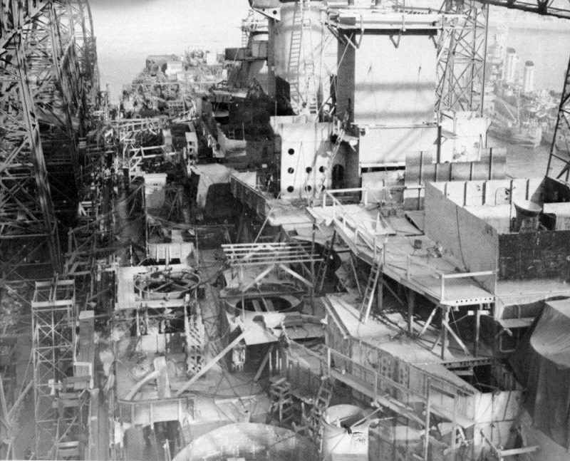 launching. The hull is complete up to the main deck and much of the